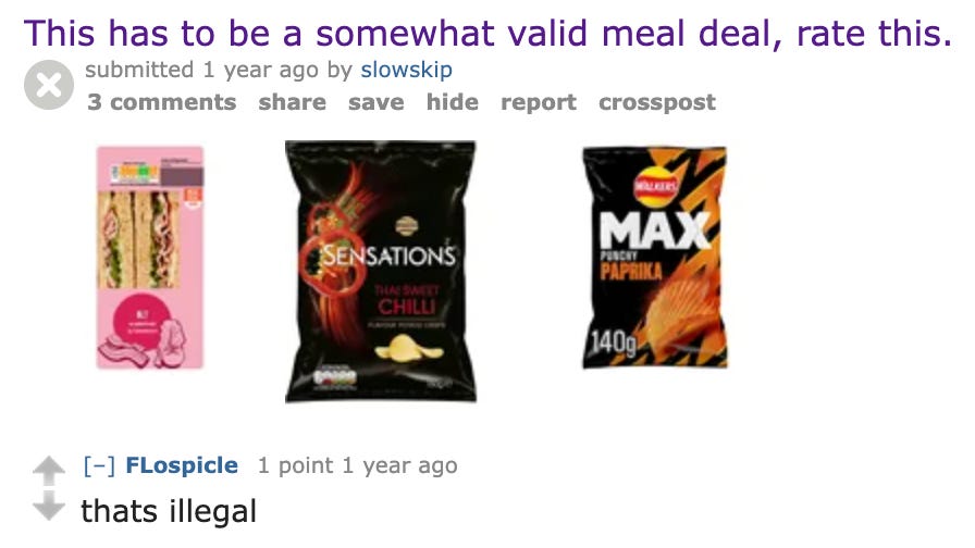 If you want to understand a country, skip the museums and visit its supermarkets. In the UK, we have over 1.8 quadrillion sad sandwich+drink+snack meal deal combinations (although I will concede they are a testament to the cultural institution that is the cheap British lunch).