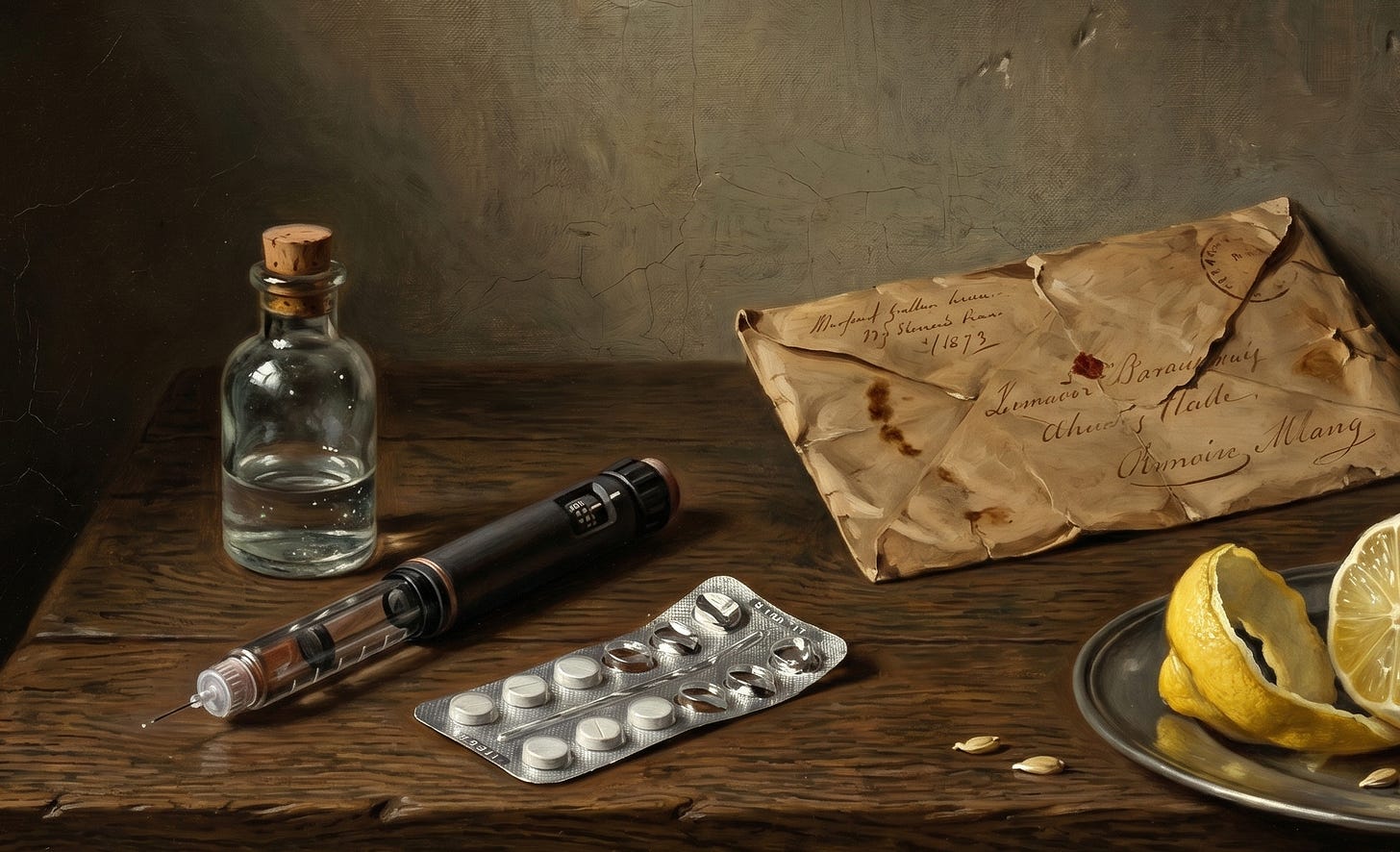 At the moment all the blockbuster drugs (Ozempic, Mounjaro) are injectable peptides which are sold in solution, usually in an injector pen (varies by region; sometimes they’re sold in a multi-dose vial but always in solution).