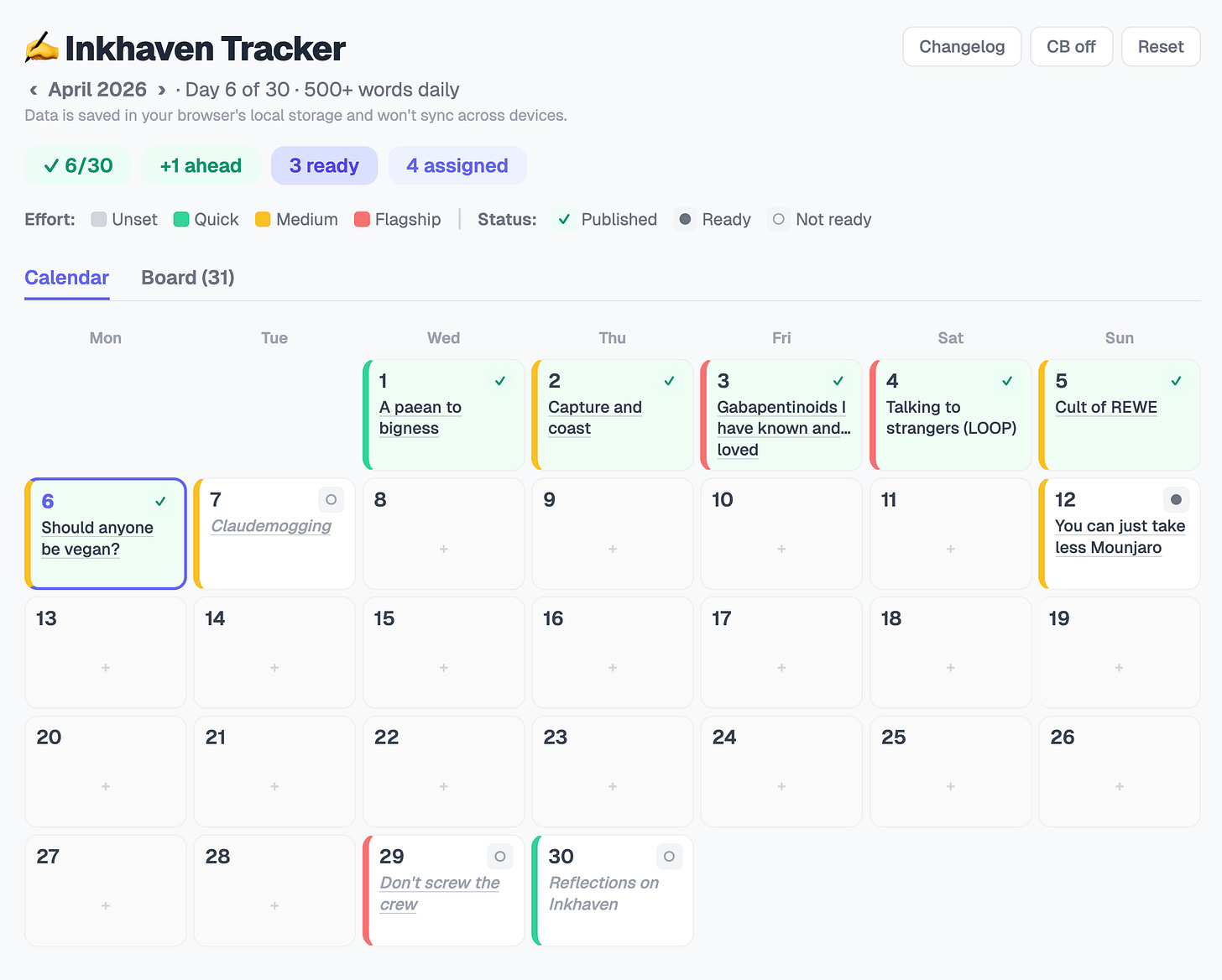 Inkhaven Tracker