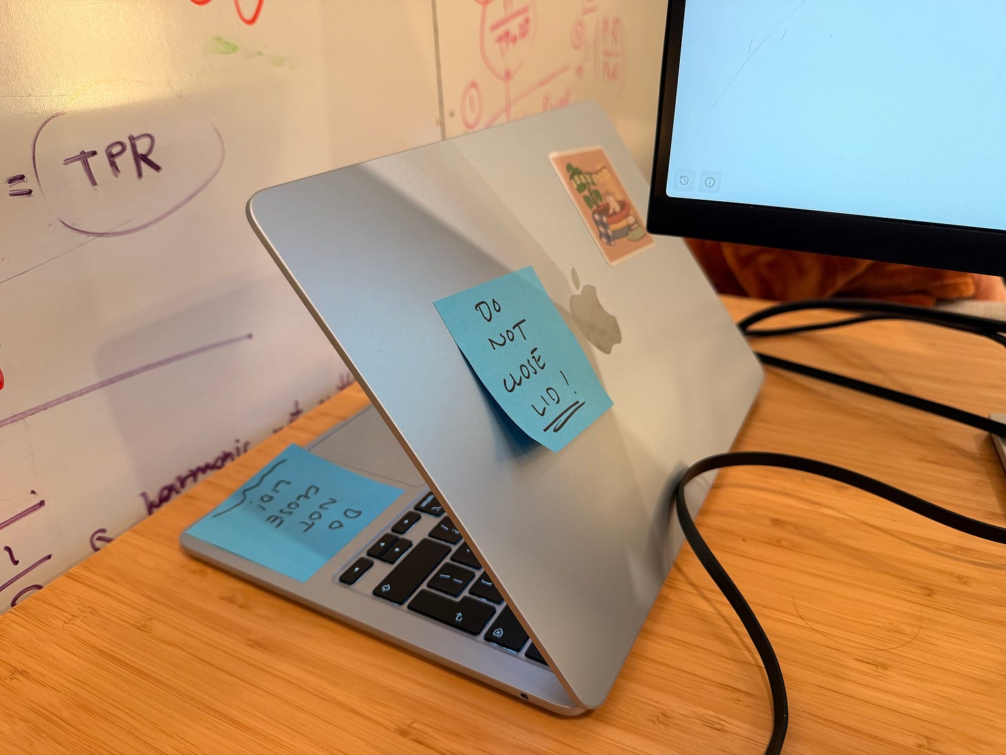 I couldn’t be bothered to deploy this one anywhere so I served it locally from my laptop, running caffeinate to stop it going to sleep. But it still sleeps if the lid is closed, so I used this low-tech solution to keep it awake: