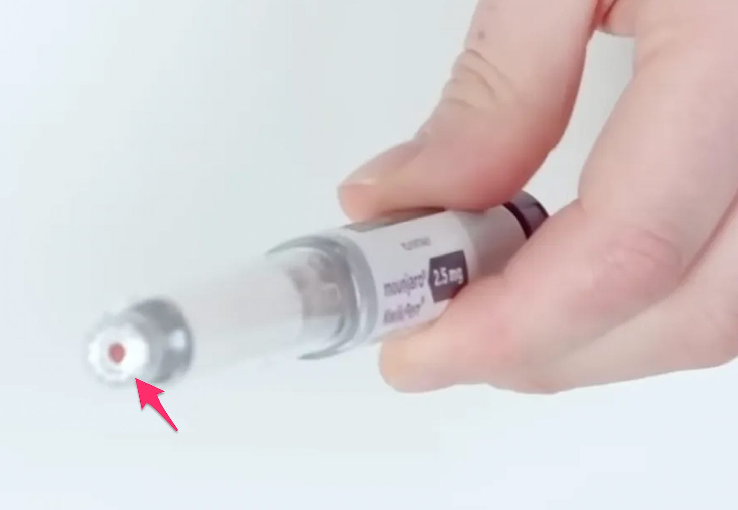 You take off the lid, screw on a single-use needle, twist the dial on the end until the window shows “1”, jab yourself with the needle and slowly push down the plunger.